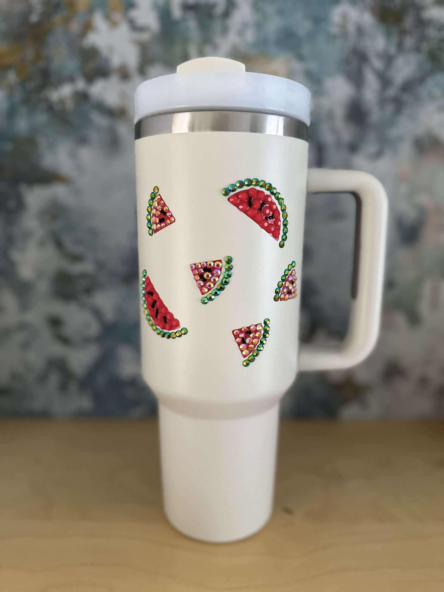 40 oz tumbler - insulated - rhinestoned - personalised - watermelon - custom - Mother's Day