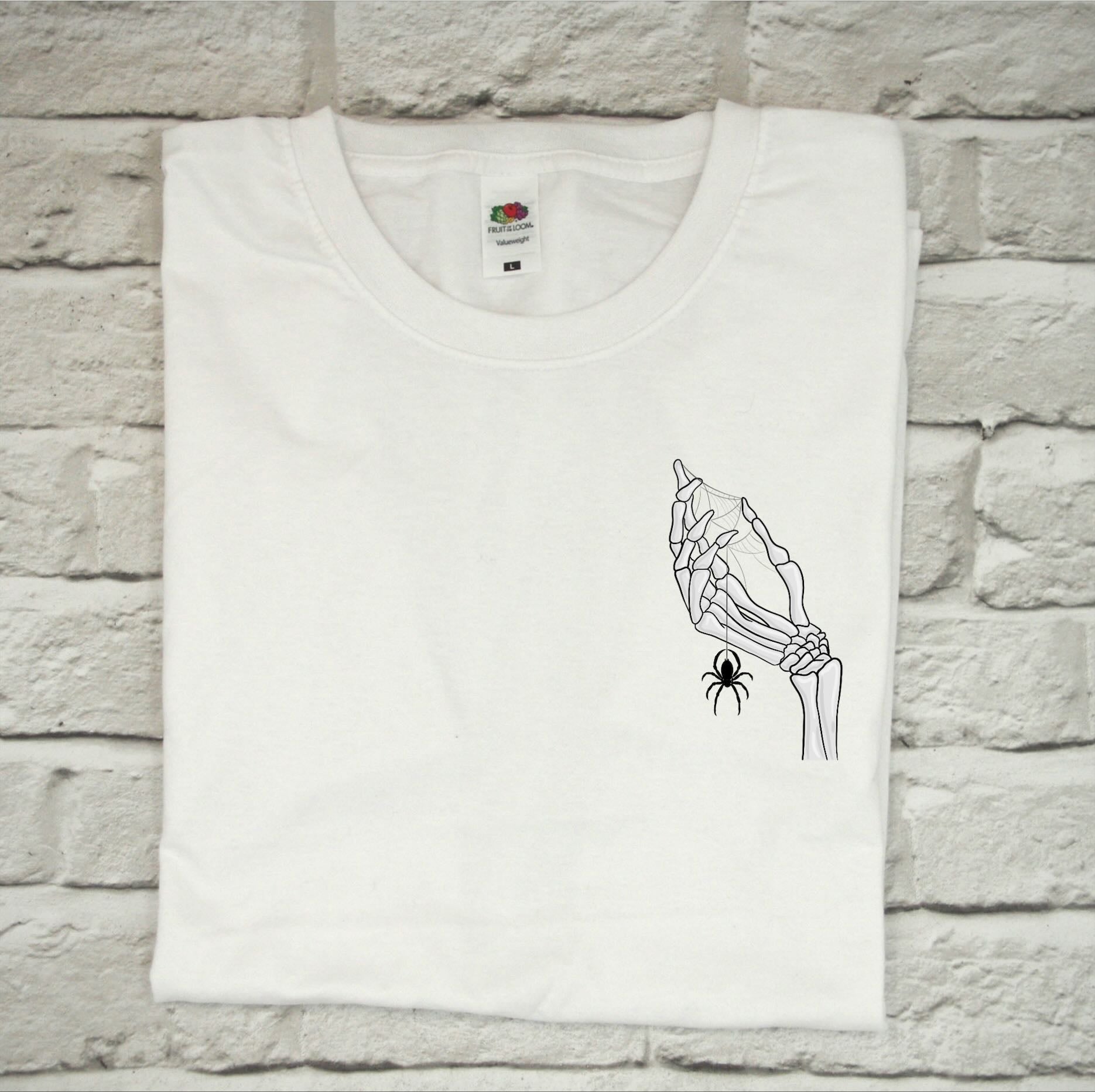 Halloween T Shirt - Skeleton hand and spider web