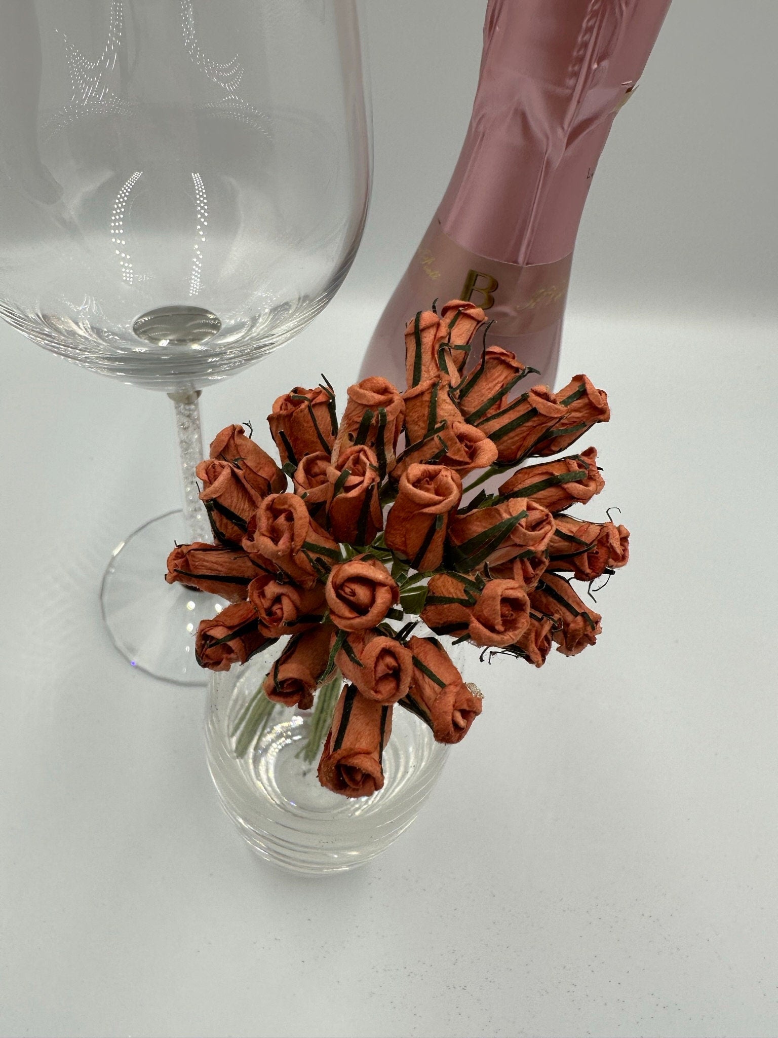 Paper rose buds flowers wired crafting wedding stationery scrapbook (x12)