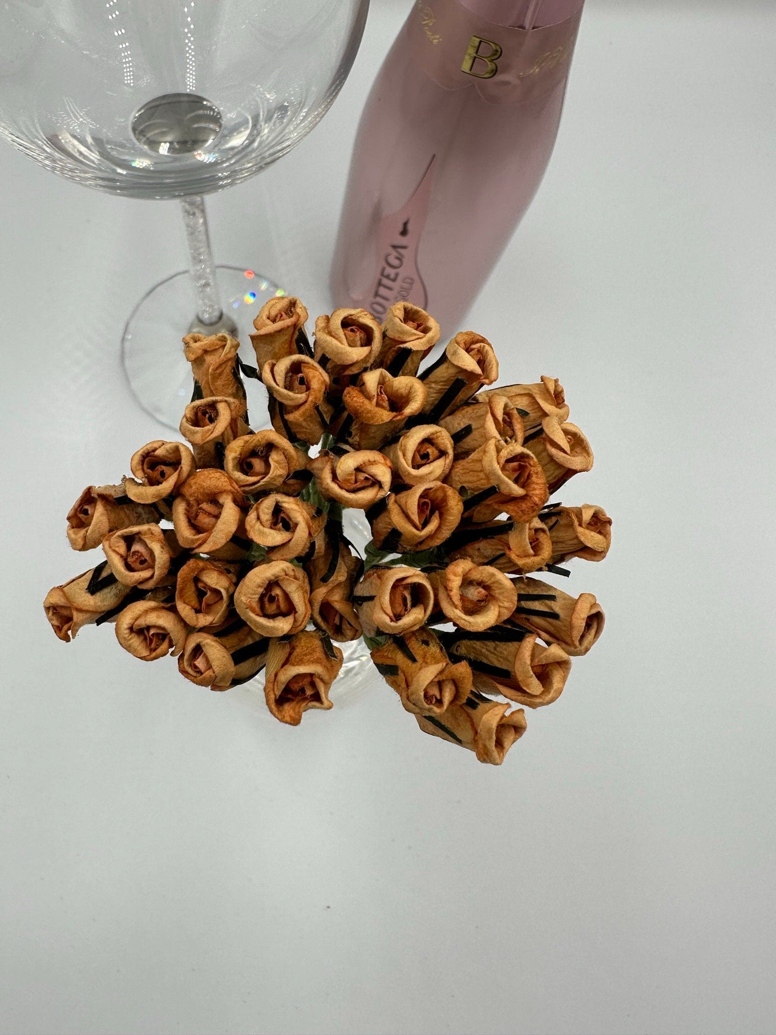 Paper roses and buds with wired stem (12 in a bunch).