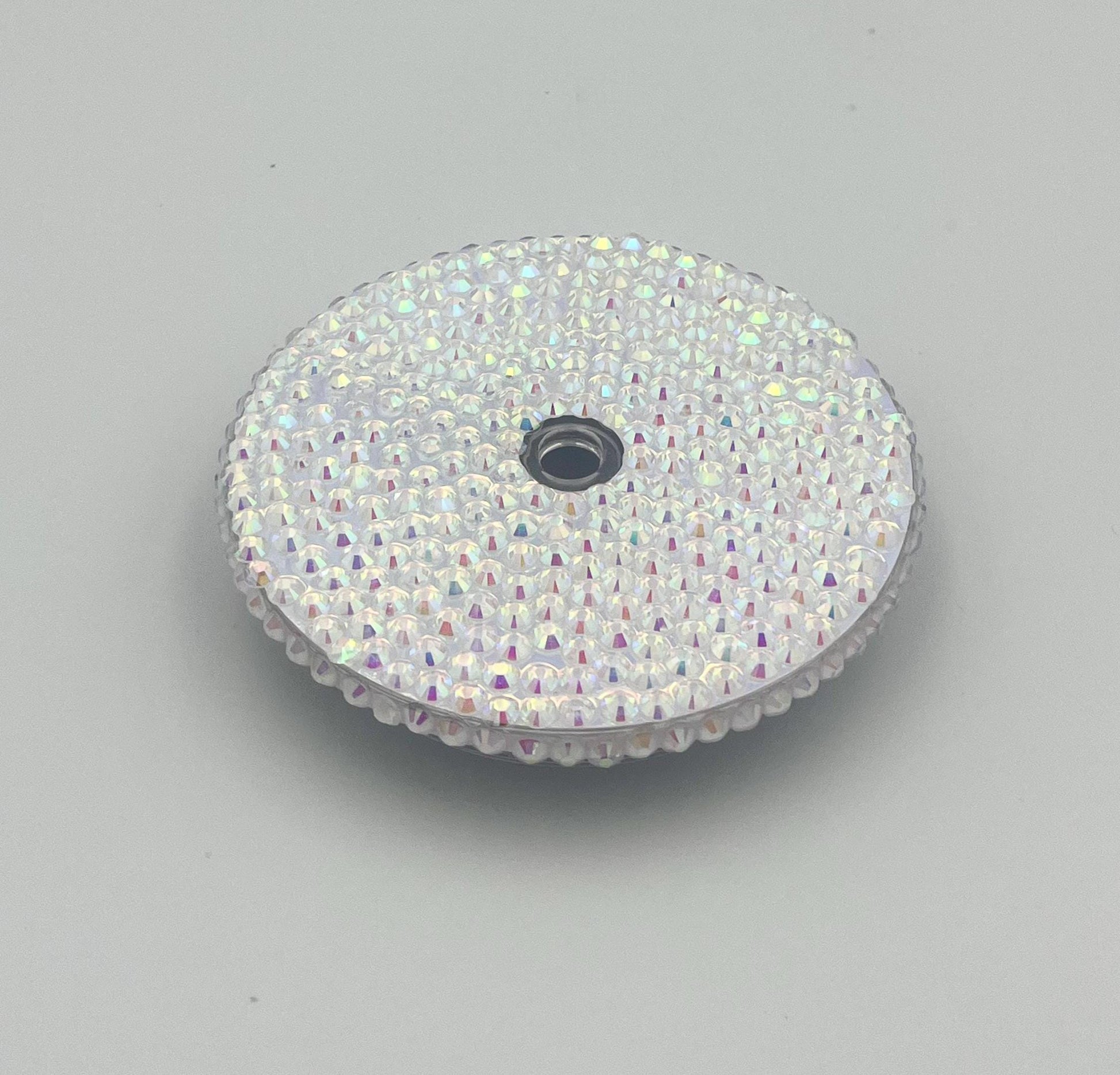 The cup has a opal shimmer vinyl and opal snowflakes around the cup.