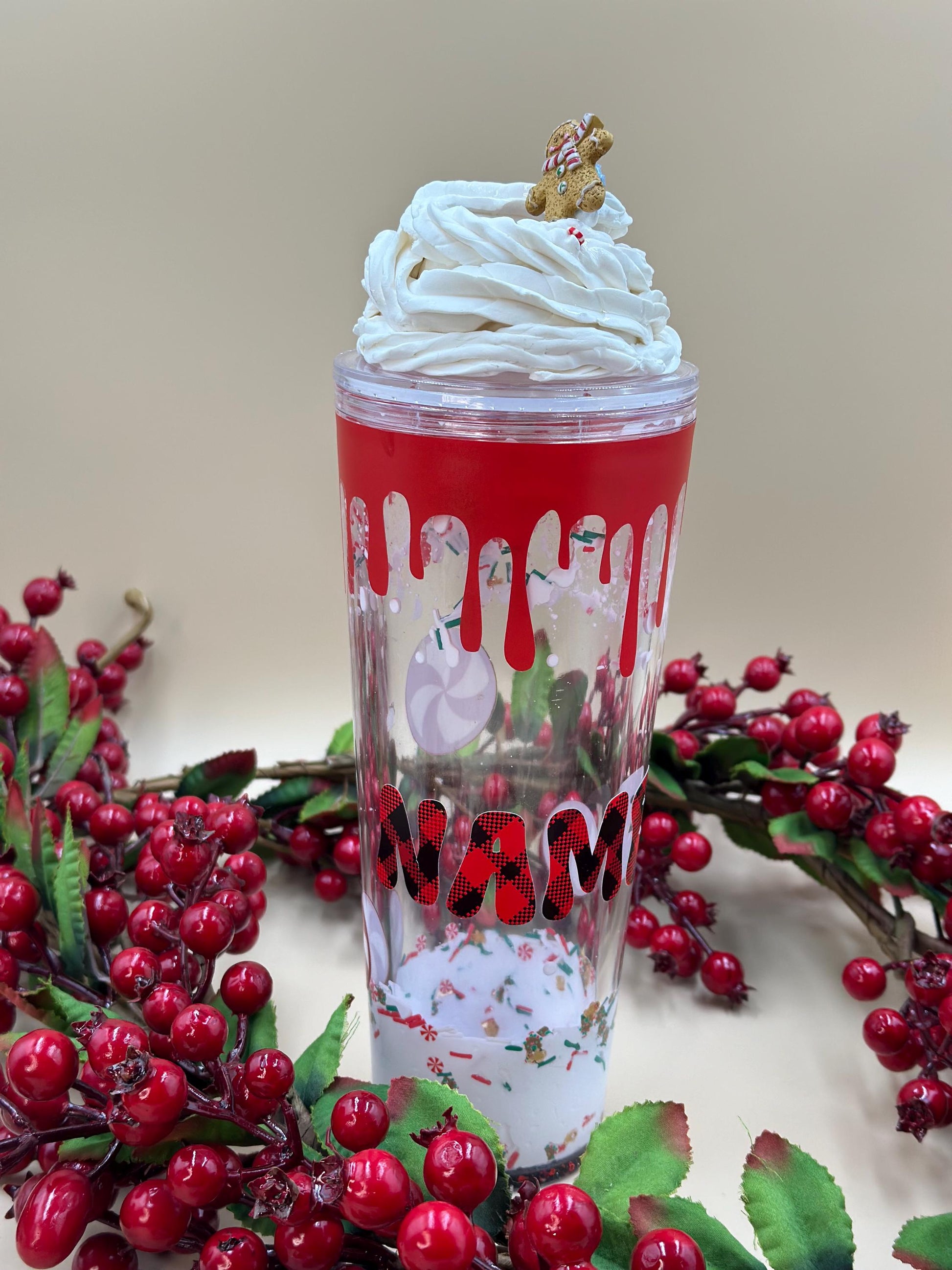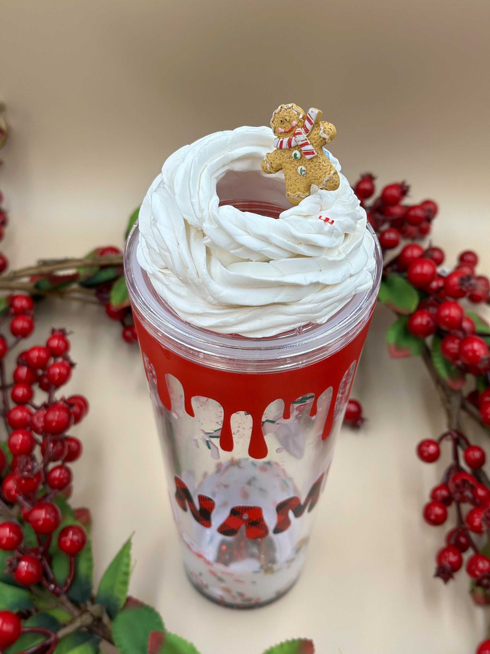Snowing Xmas snowglobe tumbler acrylic cup 24 oz - marshmallow whipped cream rhinestone - glitter - Christmas - Holiday